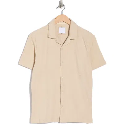 Textured Stripe Short Sleeve Button-up Shirt In White