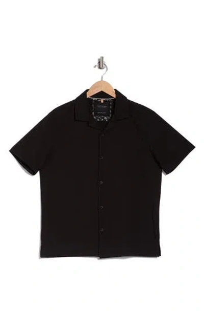 Texture Knit Camp Shirt In Black