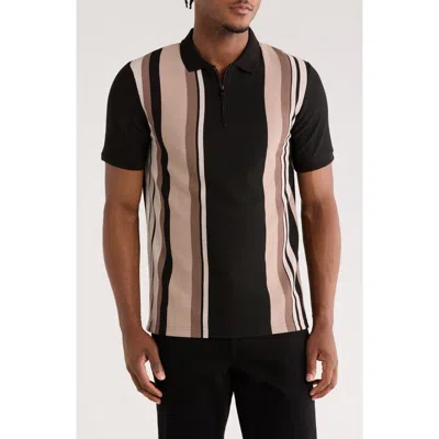 Vertical Stripe Zip Polo In Black