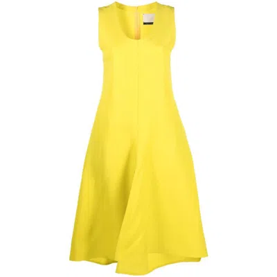 Scoop-neck Midi Dress In Yellow