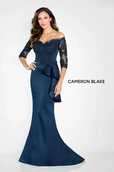 Cb139 Long Formal Beaded Peplum Evening Dress In Blue