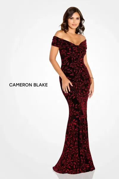 Off Shoulder Metallic Mothers Gown In Black & Red In Burgundy