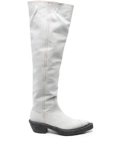 Venga Denim Knee-high Boots In Grey