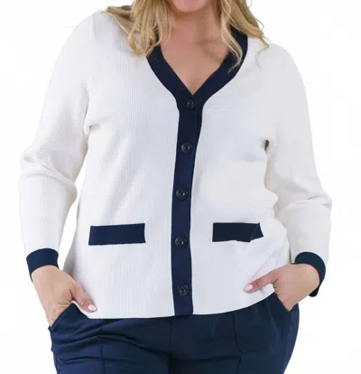 Hilda Long Sleeve V-neck Jacket - Plus In White In Multi