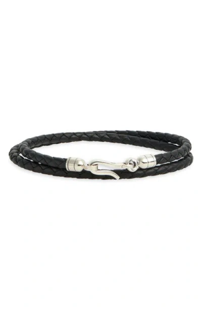 Euro Braided Leather Triple Wrap Bracelet In Black