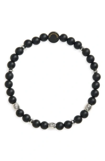 Evil Eye Beaded Stretch Bracelet In Black Onyx/pyrite