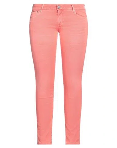 Woman Jeans Coral Size 29 Cotton, Elastane In Red