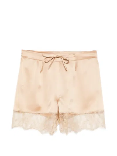 Lace-trimmed Silk-satin Shorts In Neutral