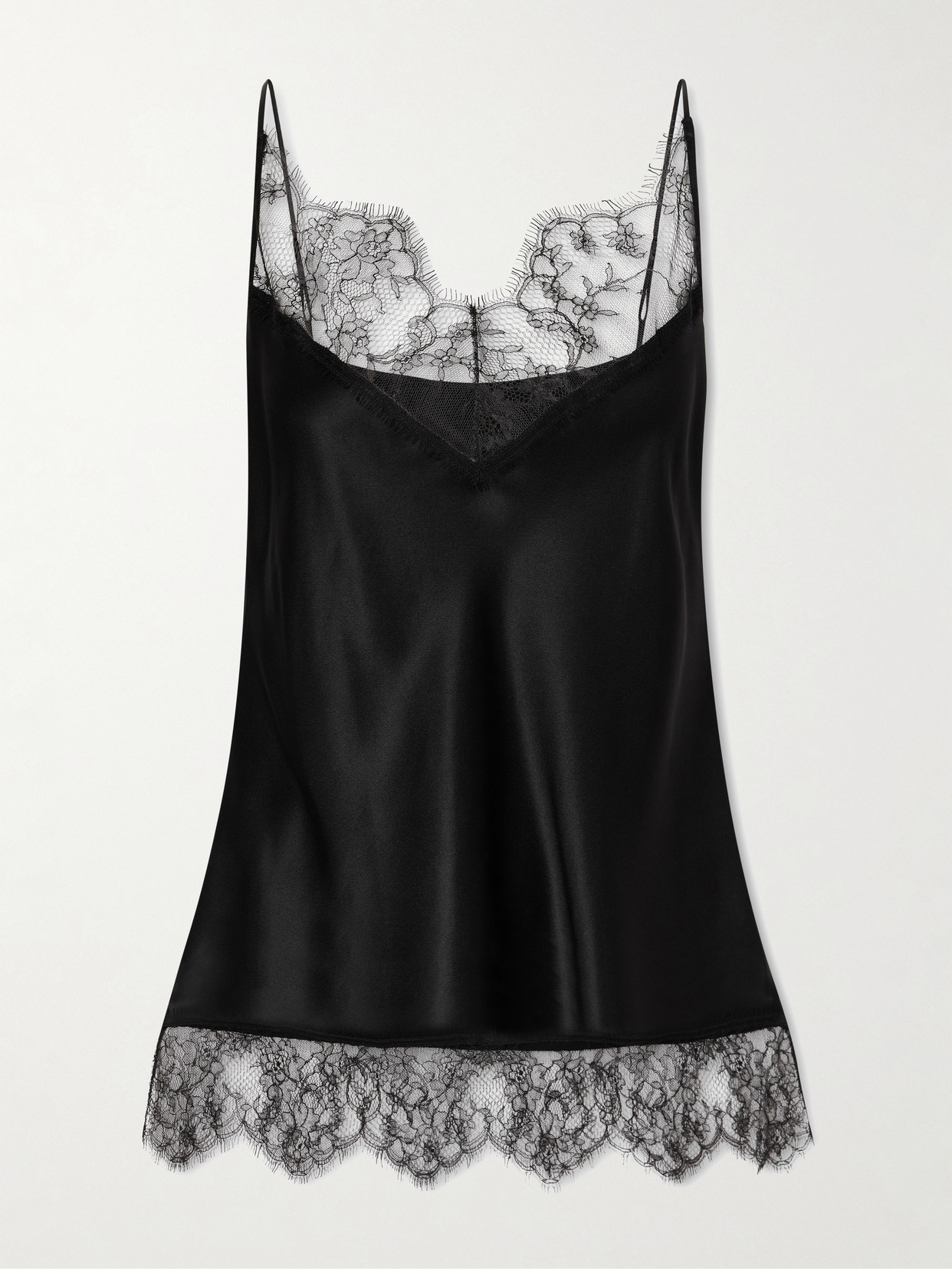 Lace-trimmed Silk-satin Camisole In Black
