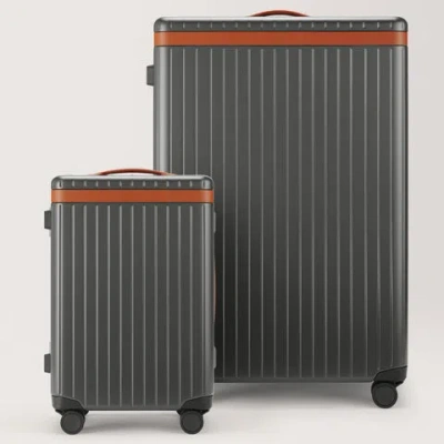 Check-in And Carry-on Luggage Set - Polycarbonate And Aluminium - Gray / Cognac Brown