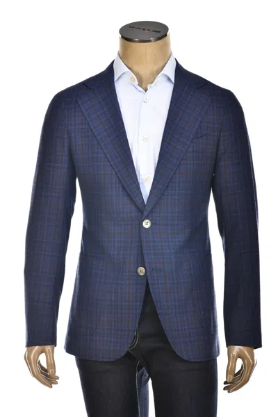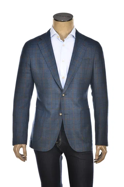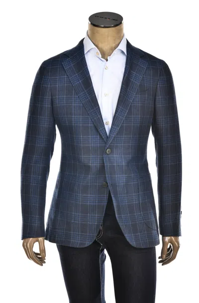 Windowpane Wool-silk Sport Jacket In Blue