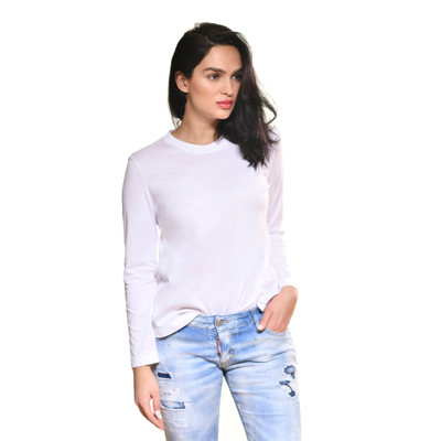 Long Sleeve Round Neck Tee In White