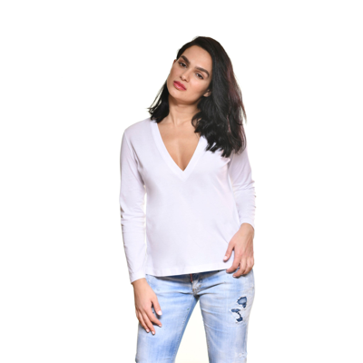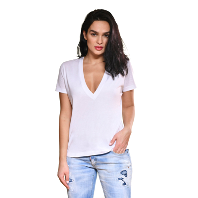 Short Sleeve V Neck Tee In White