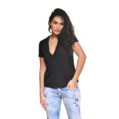 Short Sleeve V Neck Tee In Black