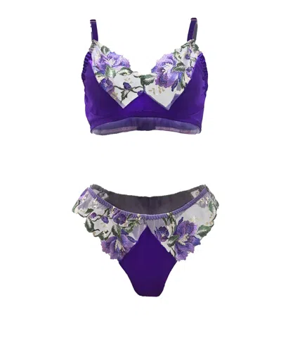 Women's Pink / Purple Theory Of Strings Embroidered Satin Blend Dark Bralette In Pink/purple