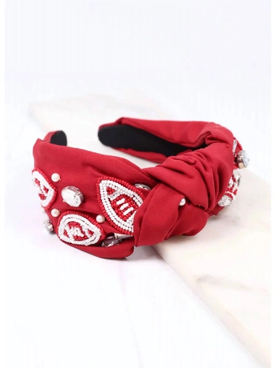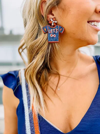 Let's Go Jersey Beaded Earring In Navy Orange In Blue
