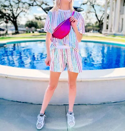 Liz 3 Compartment Crossbody Bag In Silver Fleck In Multi