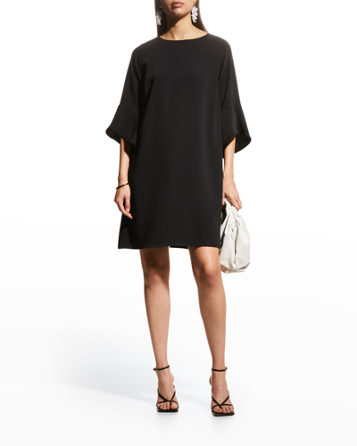 Julia Crepe Bell Sleeve Knee Length Dress In Black