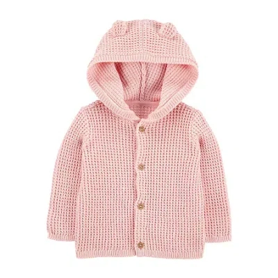 Baby Girls Hooded Long Sleeve Button Cardigan In Pink