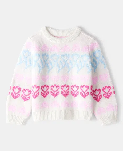 Babies' Girls Toddler 2t-5t Floral Fairisle Sweater In Pink