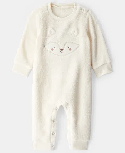 Baby Girls Color Block Fleece Long-sleeve Jumpsuit In White