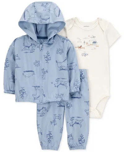 Baby Boys Dog Little Character Set Cotton Hooded Cardigan, Bodysuit & Pants, 3 Piece Set