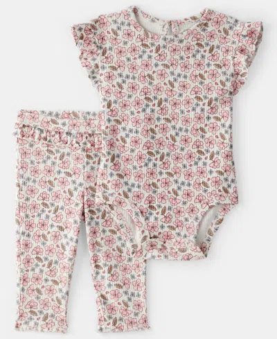 Baby Girls' Ruffle Floral Flutter-sleeve Bodysuit And Pants, 2-piece Set In Pink