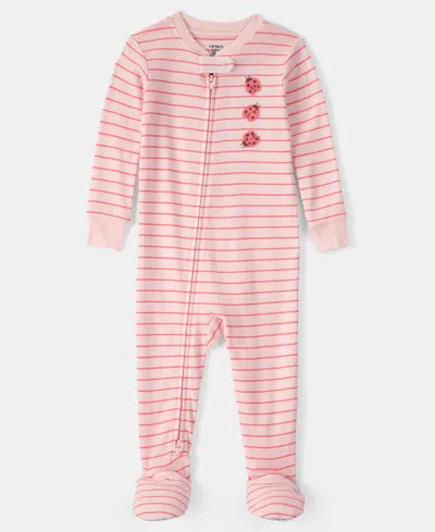 Baby Girls' Ladybug Striped Snug-fit One-piece Pajama In Pink