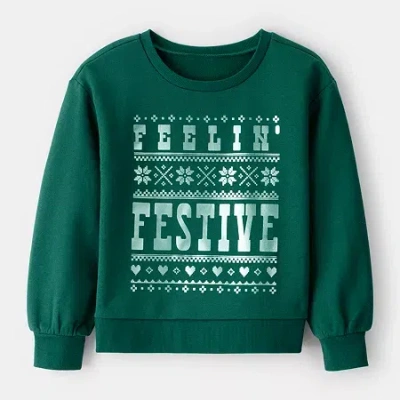Holiday Little & Big Kid Girls Round Neck Fleece Long Sleeve Sweatshirt In Green