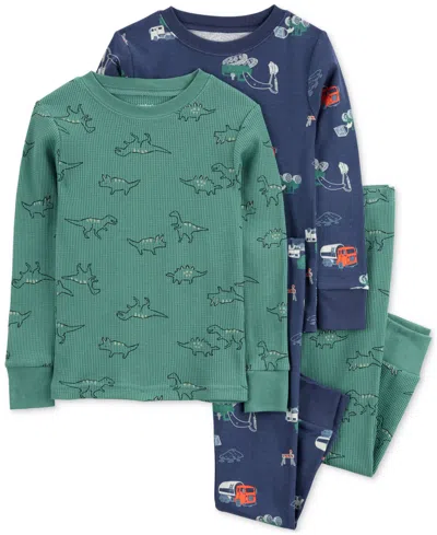 Baby Boys Dinosaur-print Cotton Long-sleeve 2-way-zip 1-piece Footed Pajamas In Green