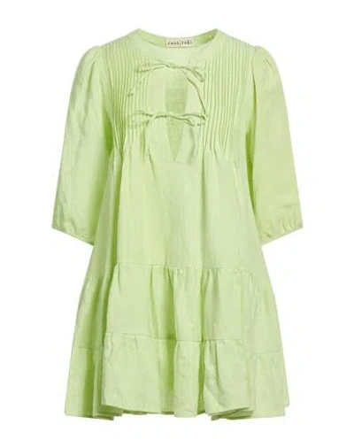 Woman Mini Dress Lime Green Size M Organic Linen