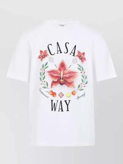 Mens White Casa Way Orchid Printed Cotton T-shir In Gray