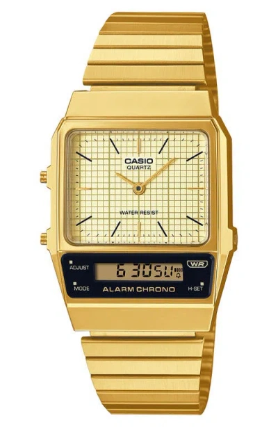 Vintage A168wg-9vt Digital Bracelet Watch, 33.5mm X 28.6mm In Gold