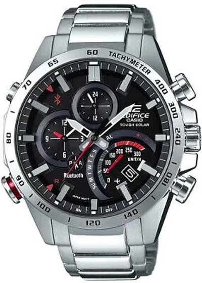 Pre-owned Edifice Time Traveler Eqb-501xd-1ajf Black Silver Men's Watch In Box