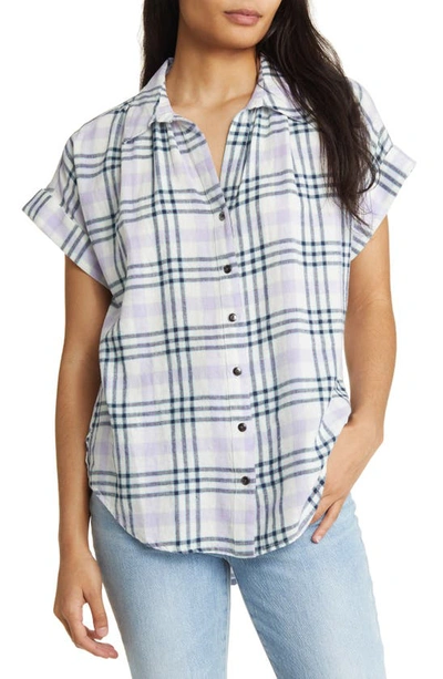 Short Sleeve Linen Blend Camp Shirt In White- Purple Winter Buffalo