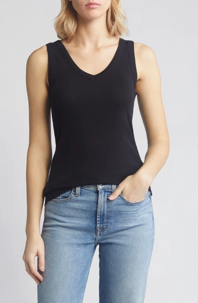 V-neck Organic Cotton Blend Tank Top In Black