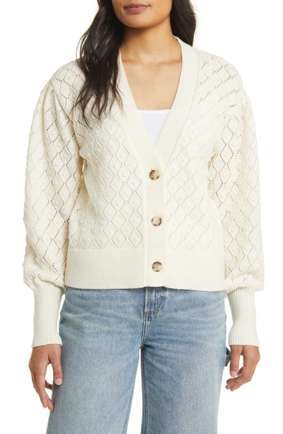 Pointelle Deep V-neck Cardigan In Ivory Pristine