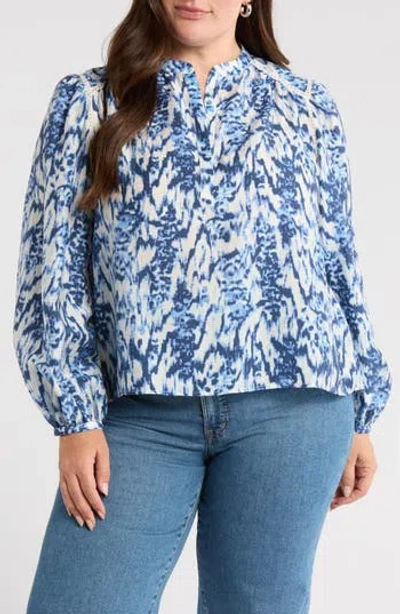 ® Smocked Split Neck Top In Animal Print