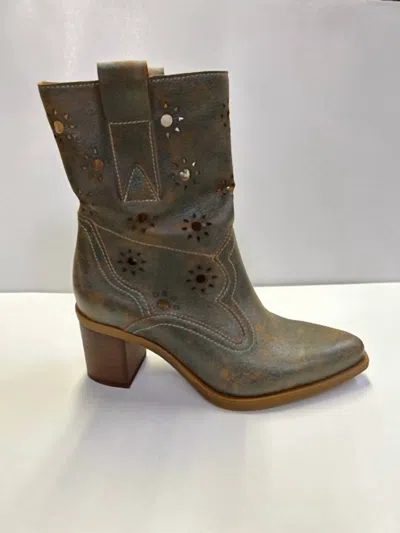 Tonya Heeled Boots In Petrol In Grey