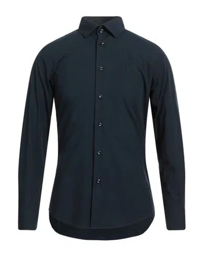 Man Shirt Navy Size 17 ½ Cotton, Elastane In Navy Blue