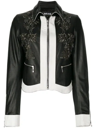 Pre-owned Women Wonderful Nerobianco Studded Biker Leather Jacket In Black & White