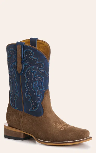 Cavender's Youth's Blue And Brown Roughout Suede Punchy Toe Cowboy Boots