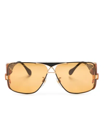 Brown Geometric Unisex Sunglasses 217/3-3 002 60 In Gold