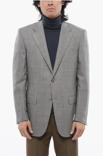 Prince Of Wales Motif Wool Blazer In Gray