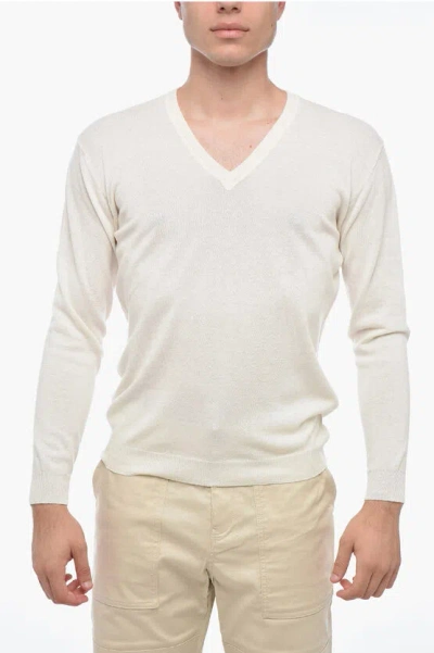 V-neck Wool Blend Pullover In White