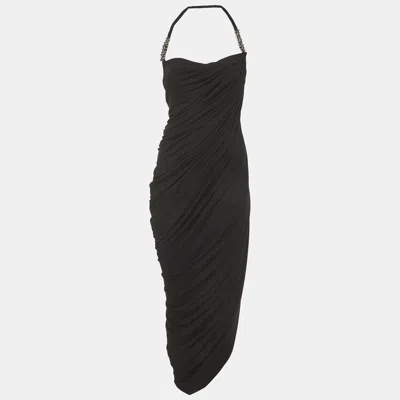 Pre-owned C. Dam Black Stretch Crepe One Shoulder Draped Maxi Dress Xs