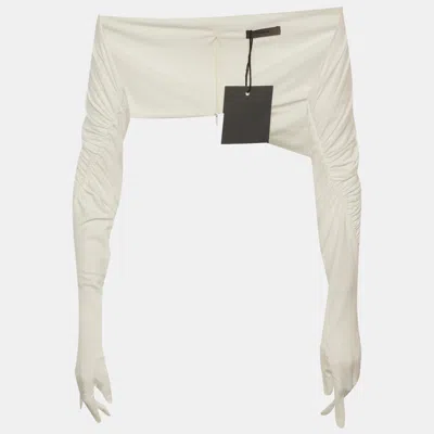 Pre-owned White Jersey Draped Ruched Maxi Dress Xs