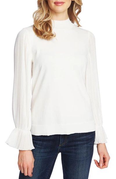 Pleated Sleeve Mock Neck Sweater In Antique White
