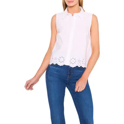 Cotton Eyelet Sleeveless Button-up Shirt In Neutral