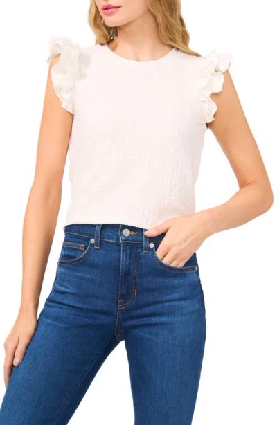 Ruffle Sleeve Textured Knit Top In New Ivory